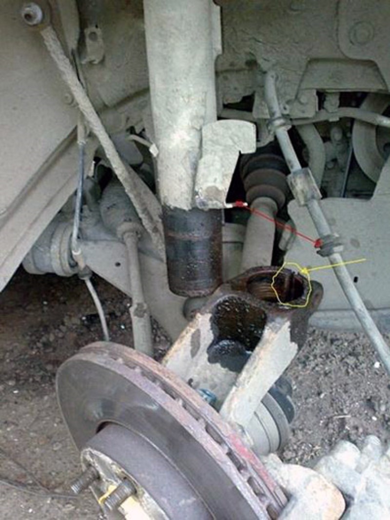 - Відкручуємо болти, якими амортизаційна стійка кріпиться до поворотного кулака.